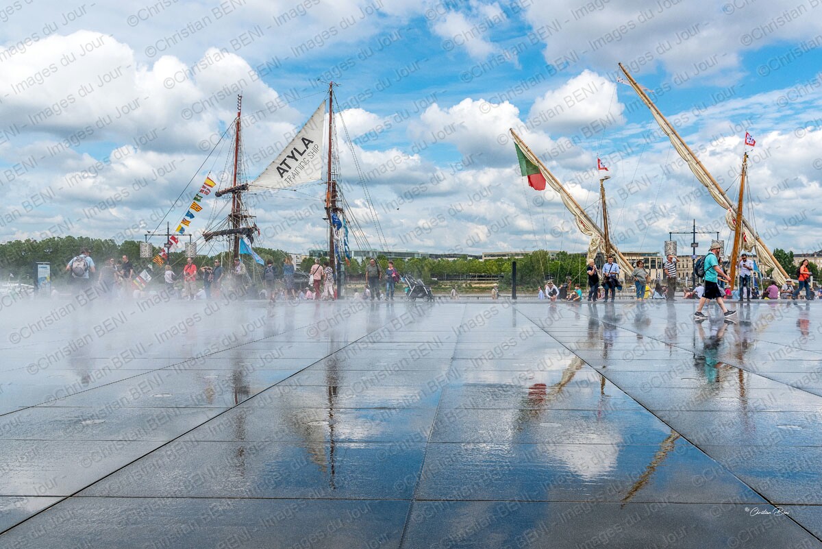 Reflet d'atyla et de Vera cruz dans le miroir d'eau à Bordeaux